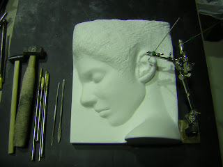 今日は耳のおおよその形を彫っていった。明日はさらに細かく彫っていく。気を付けなければいけないことは、耳の裏側を先に彫ってしまわないことだ。もし先に彫ってしまうと、ハンマーの衝撃に耐えられずに耳が折れてしまうだろう。先に耳の内側を作ってしまわなければならない。